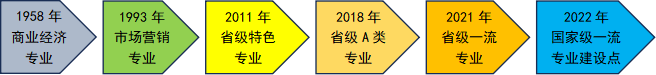 2001年获得企业管理硕士学位授予权,2007年获工商管理(MBA)专业硕士学位授予权,2010年获工商管理一级硕士学位授予权,2012年获评吉林省优秀教学团队。2003年《市场营销学》被认定为省级优秀课程;2005年《市场营销》被认定为省级精品课程;2019年《解密市场营销》(双语)被认定为省级精品在线开放A类课程;2021年《冰雪旅游目的地营销》被认定为省级精品课程。2021—2023年《市场营销学》《销售管理》《服务市场营销》和《分销渠道管理》获评校级课程思政示范课/校级“金课”建设项目。