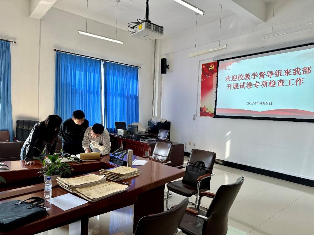 为建立健全kaiyun官网大学英语教育教学质量保障体系,进一步提升教学质量管理的主体意识和责任意识,根据学校本科教育教学审核评估试卷专项检查工作的安排, 2024年4月9日,校教学督导裴乃偱、公共外语教研部教学督导呼琳、公共外语教研部主任苗国新、副主任赵书博共同对公共外语教研部2023-2024学年第一学期期末考试试卷进行了抽查。
