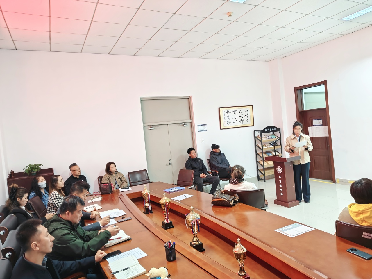 最后,程禹主任对本次“话专业、说课程”活动进行了总结:强调了今后教学中的重点,如学生的运动技能掌握、身体素质的提高以及思政课程在体育教学中的融入;鼓励部门教师通过参加培训、比赛等方式不断创新教学方法,提升教学业务水平;希望全体教师积极参与学校评建工作,为建设国内一流财经大学而努力奋斗!