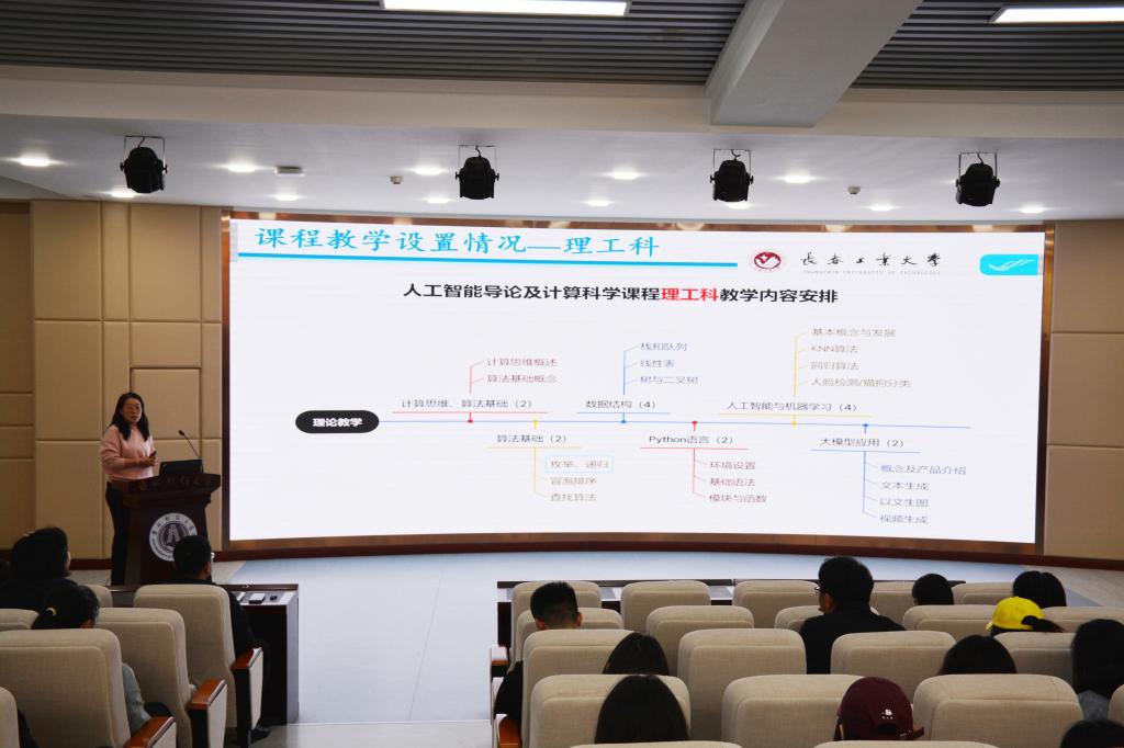 5月7日下午在第一教学楼1102开展第二场,本次培训会特邀长春工业大学的周丽娟教授做题为“人工智能导论及计算科学课程重构—融合理论、实操与计算思维的课程教学”的报告。报告从课程背景与目标、教学内容与知识模块、课程内容设置情况、资源与平台、未来教学规划等方面全方位地呈现了人工智能导论及计算科学课程教学的新思路和新技巧。