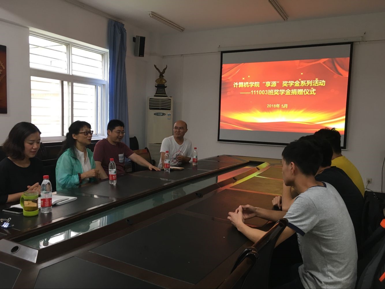 5月23日下午,万象城awcsport官网“享源”奖学金系列活动之111003班奖学金捐赠仪式在北一楼顺利举行。111003班班主任罗良慧,111003班校友丁文秀(现为湖北省地震局高级工程师),111003班校友龚文引(现为万象城awcsport官网教授),万象城awcsport官网党委副书记孙莉出席此次捐赠仪式。