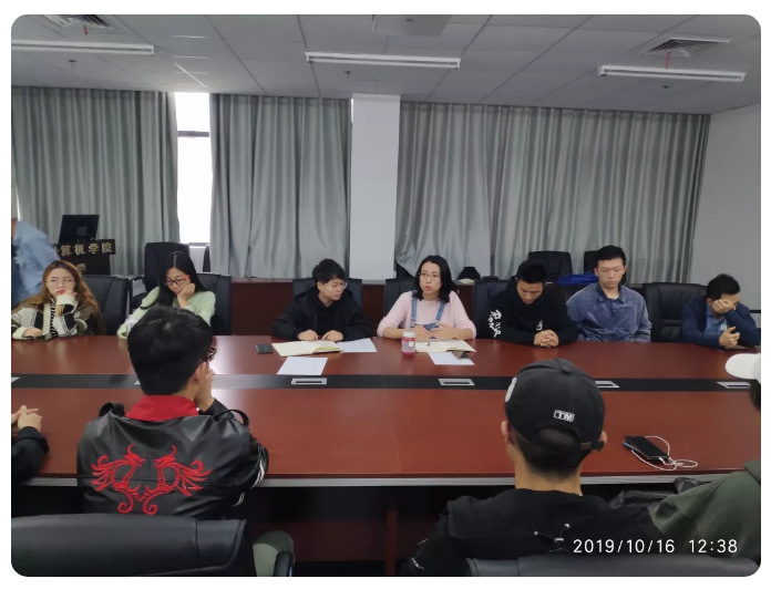 10月16日,万象城awcsport官网“不忘初心 牢记使命”主题教育专题调研座谈会暨第六期院领导接待日活动在科教楼309成功举行,此次座谈会主要分为学生社团建设,奖助贷补、学业规划、学务学位以及就业指导这三个专题。万象城awcsport官网党委副书记、纪委书记傅苑,团委书记李欢欢,团委副书记汪欣欣以及各年级辅导员出席活动。