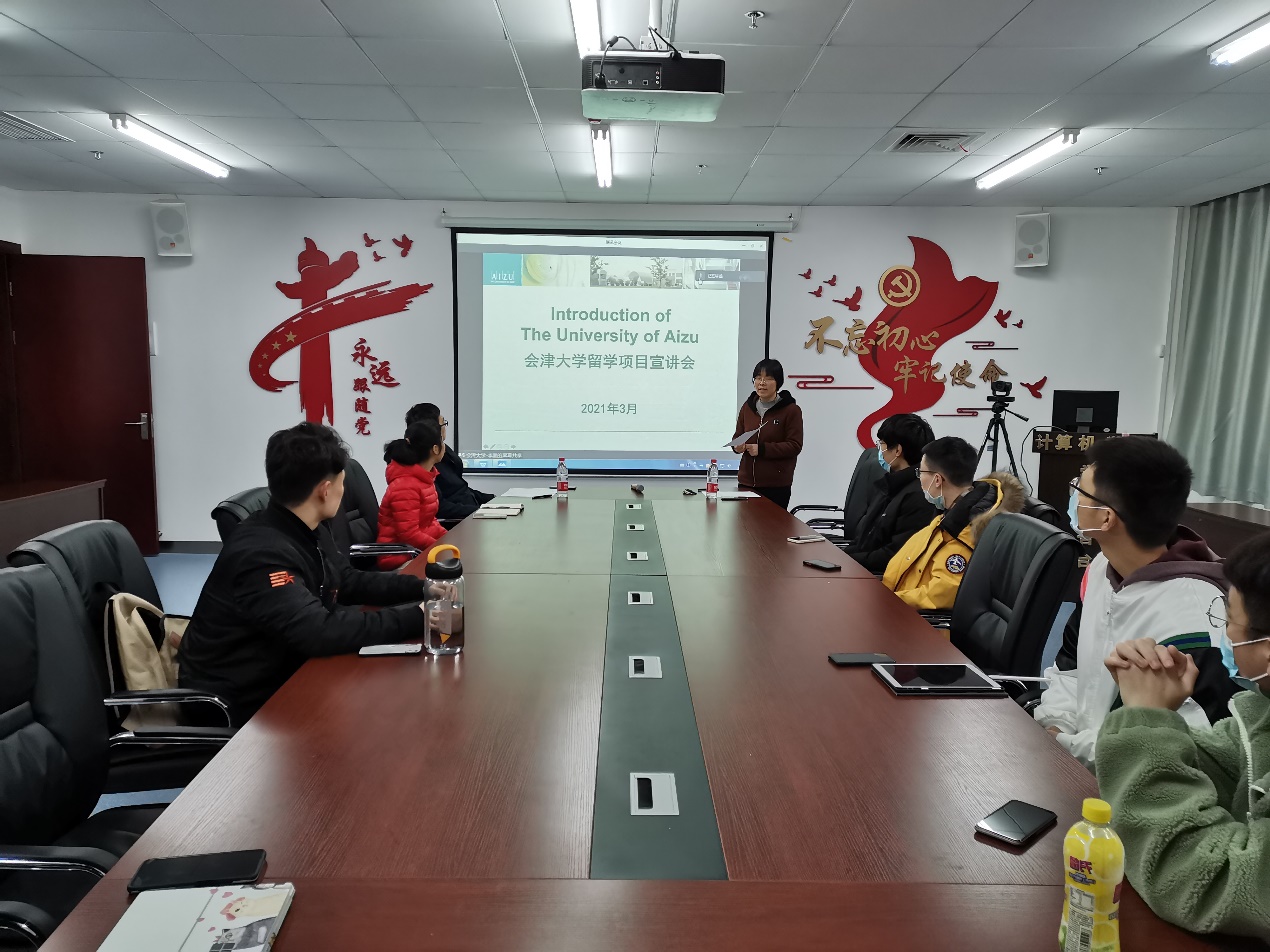 (通讯员:张园园)2021年3月5日下午,日本会津大学留学项目宣讲会在万象城awcsport官网309会议室顺利召开。本次宣讲会由万象城awcsport官网副院长张冬梅教授主持,万象城曾德泽教授、日本会津大学李鹏教授对“3+2”留学项目进行介绍。