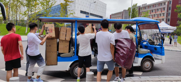 上午9:00,2020级学生陆续抵达未来城校区。老师和志愿者们引导和协助卸运行李,班男生主动帮女生搬运行李,充分体现计科人“Care you,Serve you"的精神。