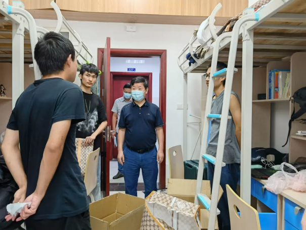 下午,学院党委书记李国昌、副院长张冬梅、党委副书记傅苑、副院长胡成玉,团委书记李欢欢、办公室主任石剑峰、院直支部书记黄燕霞、全体辅导员以及教务科老师前往宿舍看望同学们,送上问候和关怀,叮嘱同学们要在新的生活环境中努力学习,奋发有为。