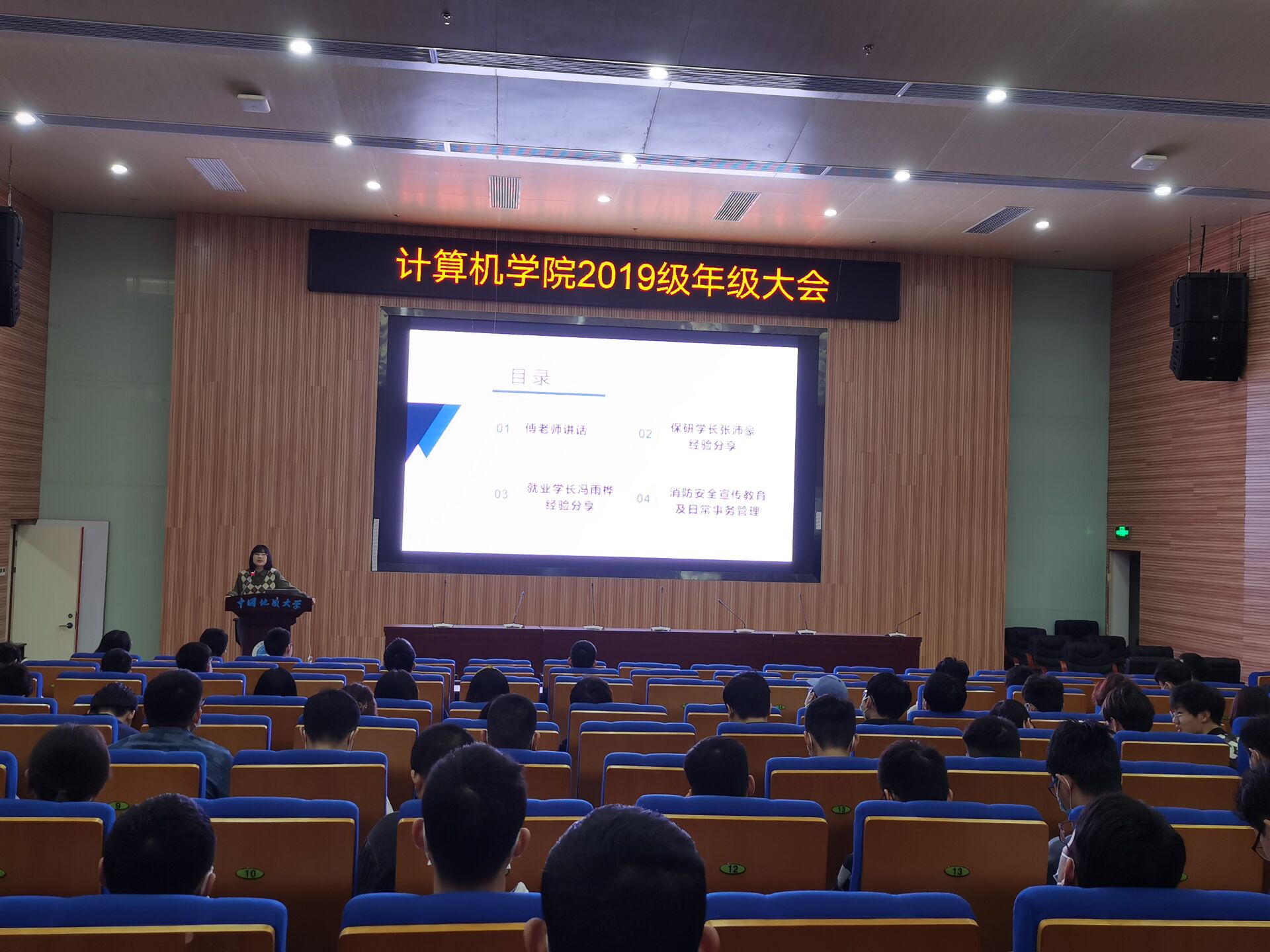 (通讯员:司子猷)橙黄橘绿,叶红季白,19级计科学子们在这个秋天迎来了充满未知与挑战的大三学年。为在关键节点帮助同学们厘清目标,尽早做好人生规划,同时对近期学院各项事务进行再提醒、再嘱咐、再强调,11月3日上午,学院党委副书记傅苑,19级辅导员闫维蓉,18级学长张沛豪、冯雨桦,19级全体同学于科教一楼报告厅召开了新学期年级大会。