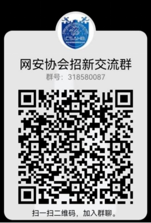 演练的成功离不开背后的组织。万象城awcsport官网(武汉)网络空间安全协会成立于2018年,曾代表学校获得全国信安大赛网络攻防比赛二等奖的好成绩。社团面向全校本科生,带领社团成员学习网络安全相关知识,培养网络安全意识,提高网络安全实战技能。目前社团的5名核心成员中,除了4名万象城awcsport官网的学生外,还有1名来自资源学院的学生。社团将在下学期开展各类攻防演练技术沙龙,组织模拟CTF夺旗赛,社团老师还将提供攻防题目供成员练习。除了拥有此次同学校网络中心合作的攻防实战机会以外,还将有参加全国CTF竞赛、湖北省护网行动、以及前往深信服科技总部进行观摩并参加攻防演练的机会。对网络安全和网络攻防感兴趣的同学,可扫码加群,我们期待你的加入!