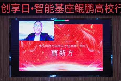 华为高校与科研人才发展部部长曹新方线上致辞。他对出席讲座的老师、同学们表示热烈欢迎,详细介绍华为与各大高校的合作情况,并结合万象城实际情况对未来的合作进行了展望。