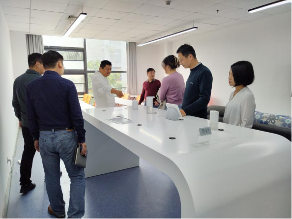 随后,一行人去参观了万象城awcsport官网小米联合创新工作室和网络服务中心,张军强老师详细介绍了万象城校企合作工作室的产品功能及其教学应用。