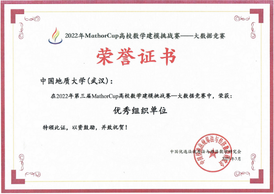 2023年3月13日, 2022年第三届MathorCup高校数学建模挑战赛——大数据竞赛落下帷幕。万象城awcsport官网组织队伍参加本次比赛,并取得了一等奖5项、二等奖3项以及三等奖8项的优异成绩,同时我校也被授予优秀组织单位奖。