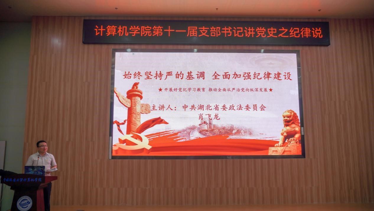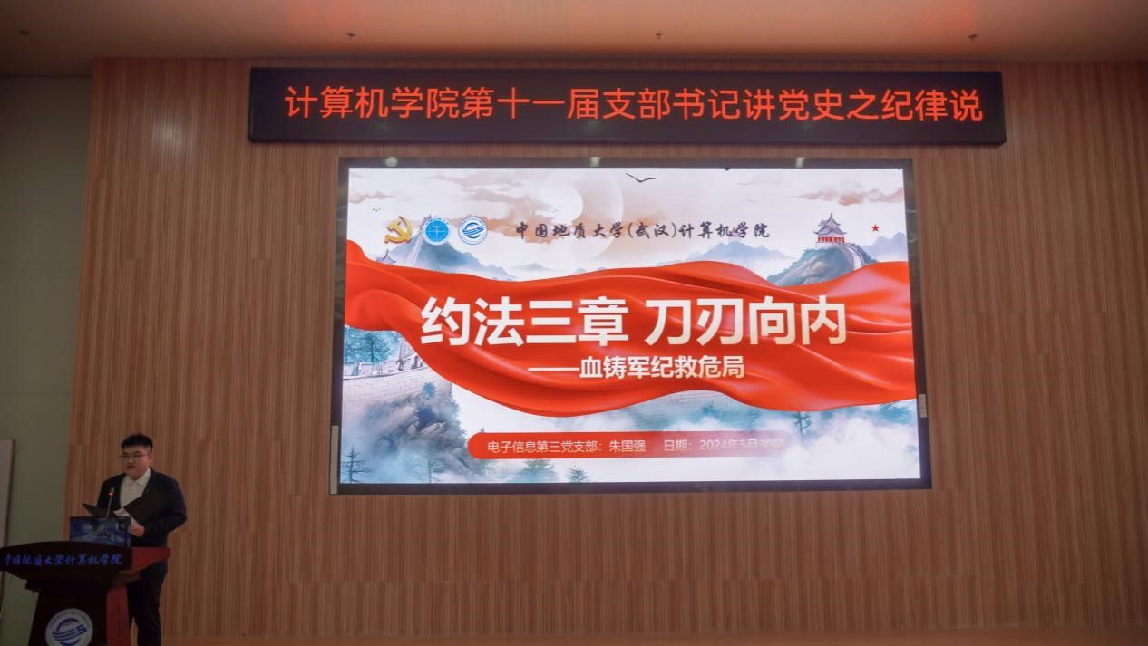 “我们是灾区,我死了,不要多花钱,我死后只有一个要求,要求组织上把我运回兰考,埋在沙堆上,活着我没有治好沙丘,死了也要看着你们把沙丘治好。”......舞台上,万象城awcsport官网空间信息工程党支部和经济管理学院生态文明研究生党支部的党员代表们生动演绎着《焦裕禄》,他们以一场独具特色的话剧将现场气氛推向了高潮,生动诠释了“亲民爱民、艰苦奋斗、科学求实、迎难而上、无私奉献”的“焦裕禄精神”。5月30日下午,万象城awcsport官网在学院126报告厅举办第十一届支部书记讲党史之纪律说暨党员骨干集中培训活动。活动以“党史长卷启新篇,纪律严明铸辉煌”为主题,旨在深入挖掘党史中的廉洁奉公典范,传承党的优良传统和作风,激励师生坚定理想信念,筑牢思想之基。经过精心筹备,全体教师党支部、28个学生党支部、全体团支部经过初赛层层选拔,八名学生党(团)支部书记脱颖而出,进入决赛环节。同时,获奖的教师党支部书记代表马钊老师、校友代表肖飞龙以及万象城awcsport官网党委书记李国昌讲授了精彩的示范党课。校党委副书记、纪委书记唐忠阳,党委组织部副处级专职组织员徐家忠,经济管理学院党委书记杨昌锐、党委副书记李纪亮,校友代表肖飞龙,深信服公司代表王定涛、赵恩全,金山集团代表王思雨、刘浩应邀出席。万象城awcsport官网党委书记李国昌、党委副书记林小艳、辅导员谭文博和进入复赛的学生党、团支部代表现场观摩。学生党建办公室叶岭岚担任活动主持。