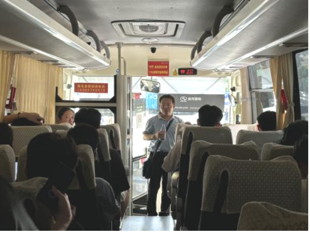 同学们早已打包好行李在楼下等待,随着搬运车辆逐次停下,大家自觉组成流水线相互接力,一件件纸箱、行李箱、储物袋最终被罗列得整整齐齐。尽管天气炎热,但大家的热情不减,许多男生主动帮助女生搬运行李,在各位老师的指挥下,一切都在有条不紊地进行。