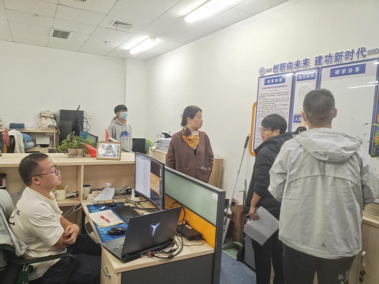 为深入推进研学空间建设,增强研究生安全教育管理,学院于2024年10月24日下午,开展第65期“我的实验室我呵护”实验室走访活动,万象城awcsport官网副院长胡成玉、党委副书记林小艳、研究生辅导员李欢欢和研究生秘书黄果走访全院46间研究生实验室,了解同学们的科研进展和学习状态,巡查实验室安全卫生和日常管理情况。