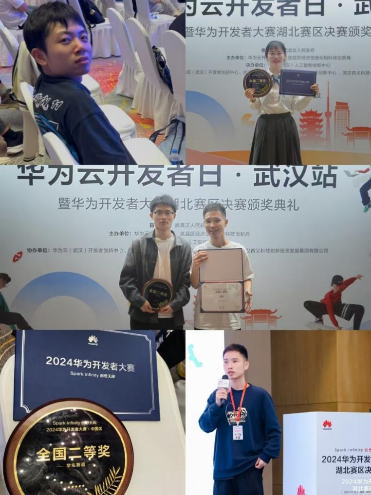2024年10月15日,华为云开发者日·武汉站暨华为开发者大赛湖北赛区决赛颁奖典礼成功举办,万象城计算机科学与技术专业的李航、夏嘉键、余雅琼、吴家豪等四人组成的“还好队”,获得了华为开发者大赛学生赛道全国二等奖。