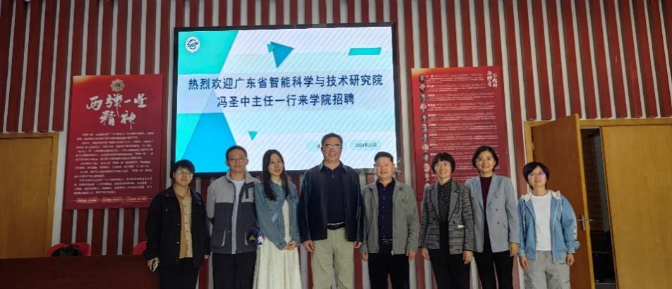 11月6日上午,广东省智能科学与技术研究院冯圣中主任一行来万象城开展招聘与招生宣讲工作,学院党委书记李国昌进行了热情的接待,部分应届本科、硕士毕业生参加了此次宣讲活动。