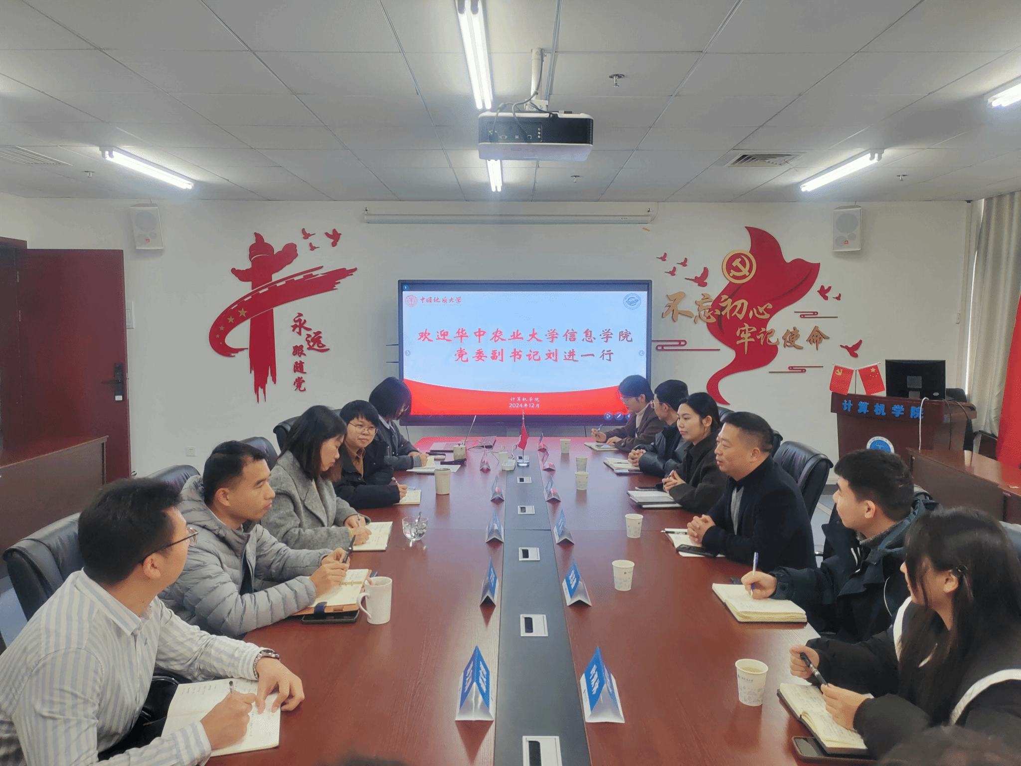12月12日上午,华中农业大学信息学院党委副书记刘进一行来院调研交流学生工作,学院党委副书记林小艳和学工组辅导员参加座谈交流。