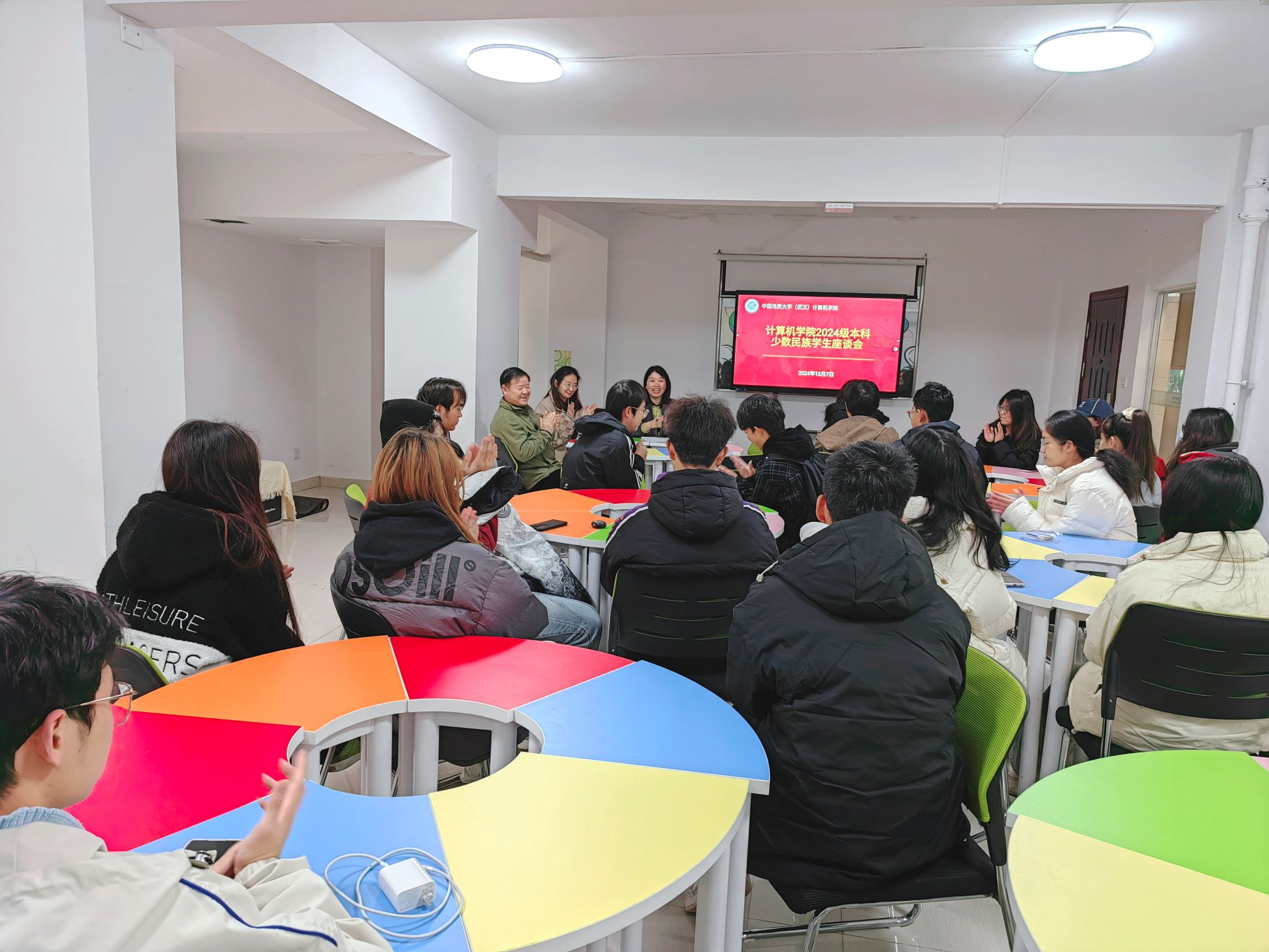 座谈会上,参会同学逐一进行自我介绍,分享了入学以来的学习生活体验,畅谈了未来学业规划。少数民族同学还分享了本民族的风土人情、民族特色和文化习俗,港澳台籍同学介绍了自己的家乡、个人求学经历和入校以来的感悟体会。他们纷纷表示,虽然初来乍到,但切身感受到学校和学院对同学们的关爱和重视,并在学院老师们的关心和同学们的帮助下,已经逐渐适应了大学生活。同时,他们也提出了在课程学习、实践活动和专业选择等方面的一些困惑。