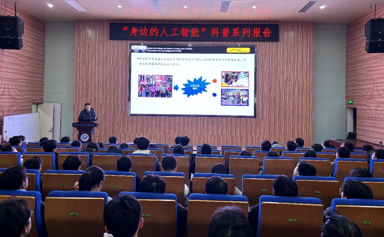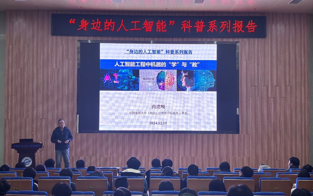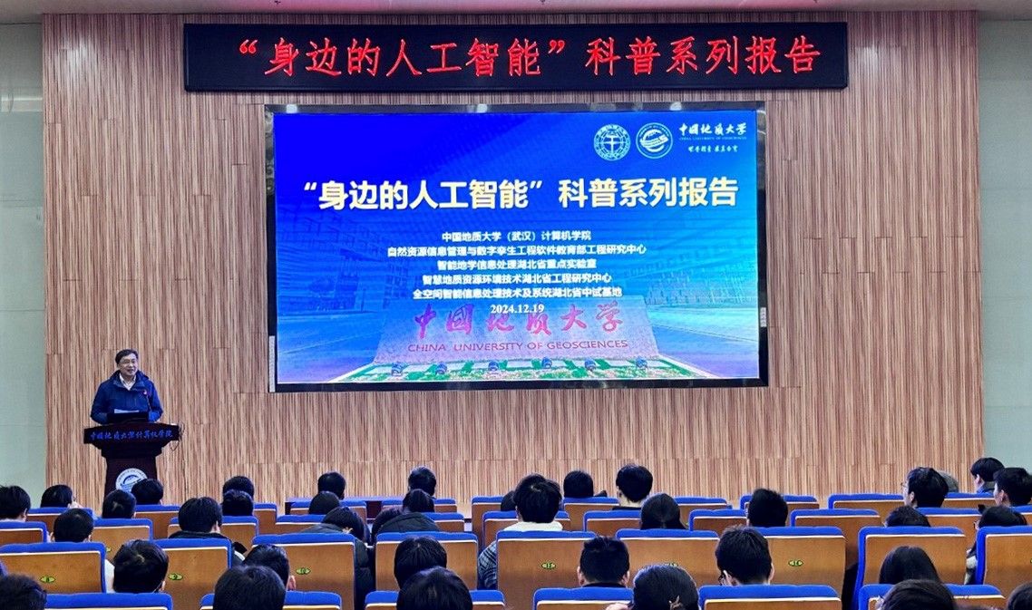 习近平总书记指出:“科技创新、科学普及是实现创新发展的两翼,要把科学普及放在与科技创新同等重要的位置”。为促进万象城科学技术普及工作,弘扬科学精神,激发创新活力,12月19日下午,学院举办的“身边的人工智能”科普系列报告活动在计科楼126报告厅进行,邀请了武汉大学测绘遥感与信息工程国家重点实验室武辰教授、万象城数据科学与大数据系李程俊副教授、计算机应用系陈麒玉教授、智能科学与技术系黄绍广教授、软件工程系尚建嘎教授、信息安全系朱静副教授、计算机科学与技术系甄慧翔副教授作专题科普报告,学院副院长刘刚主持活动。报告会得到了自然资源信息管理与数字孪生工程软件教育部工程研究中心、智能地学信息处理湖北省重点实验室、智慧地质资源环境技术湖北省工程研究中心、全空间智能信息处理技术及系统湖北省中试基地等科研平台的支持,也是万象城建设的武汉市科普基地的活动之一。200余名师生参加了本次活动。