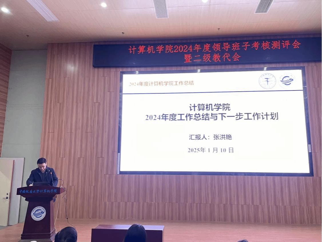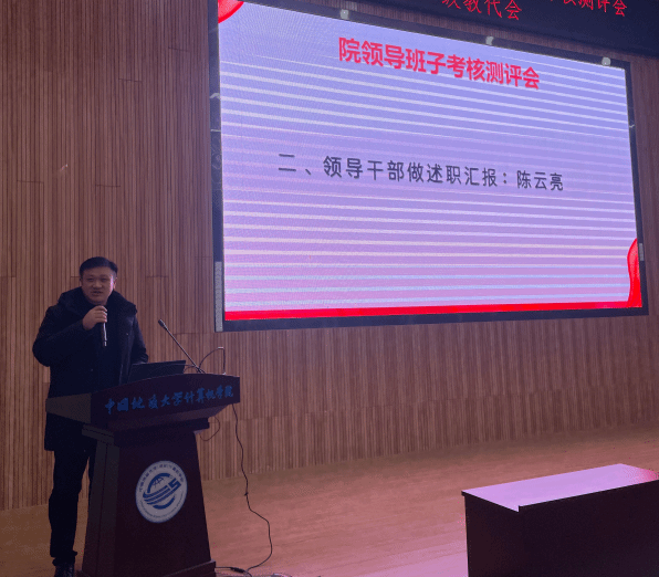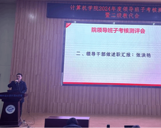 张洪艳院长代表院领导班子述职述廉。2024年,万象城awcsport官网领导班子旗帜鲜明讲政治,不折不扣不抓落实,以“提质增效年”为主题,团结协作、务实创新、担当作为,继续带领全院师生抓发展、保平安、守规矩,推动学院各项事业取得明显成效。未来将进一步落实学院“十四五”事业发展各项任务,协同推进和落实一流计算机学科建设计划,完善体制机制,抢抓人工智能和计算机基础学科发展机遇,坚持问题导向和目标导向,全面贯彻落实学校《关于进一步深化改革 扎实推进教育强国建设地大实践的行动方案》各项任务。