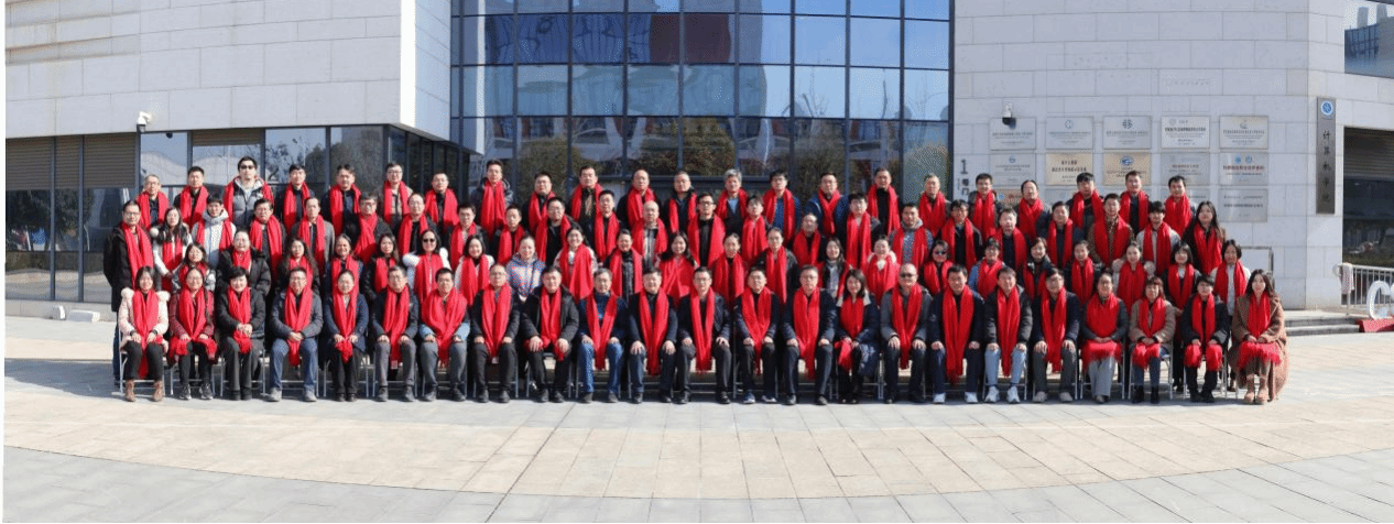 会后,全院教职工佩戴寓意红红火火的红围巾,合影留念。
