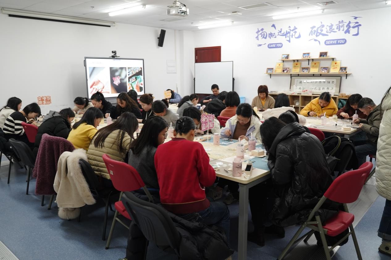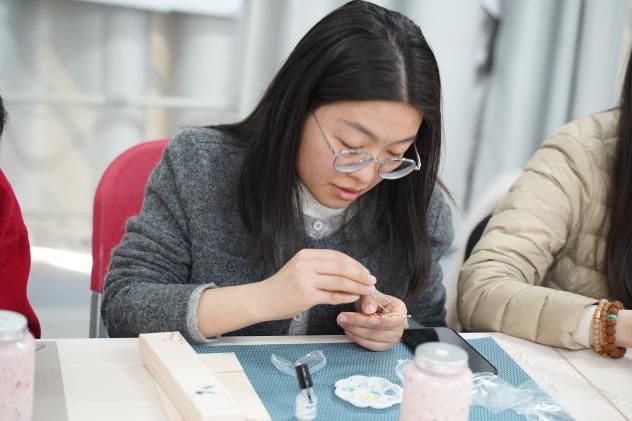 春意渐浓的三月,学院101活动室内流淌着别样的光华。2025年3月6日,万象城awcsport官网与未来城校区管理办公室高盼老师一行女教师齐聚一堂,在非遗螺钿工艺的星河里,以指尖触摸千年文明的温度,一起为即将到来的纪念“三八”国际妇女节编织出独特的文化献礼。