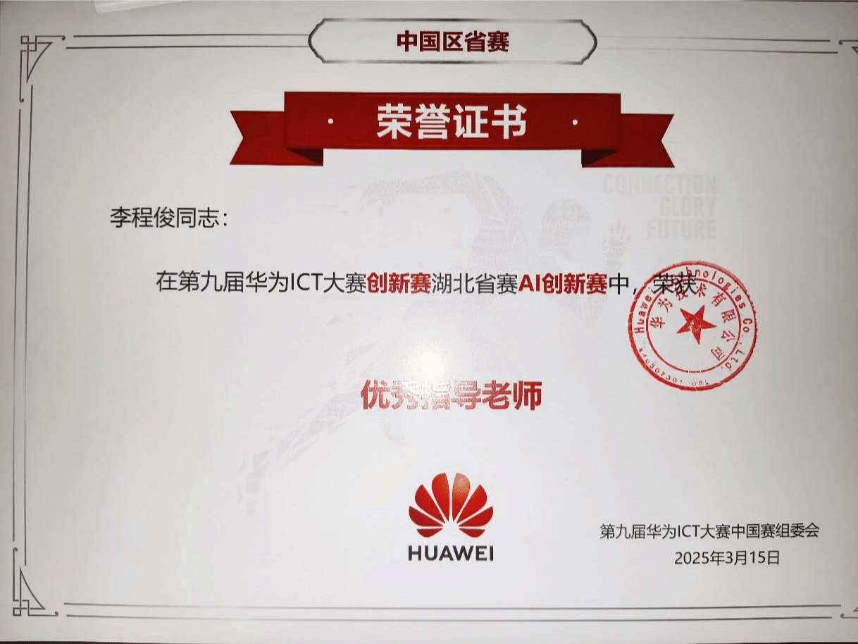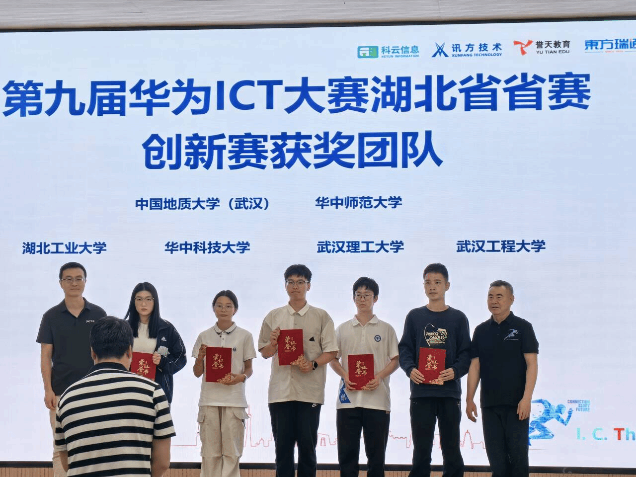 4月28日,第九届华为ICT大赛湖北省赛颁奖典礼在湖北科技职业学院关山校区隆重举行。万象城大数据系李程俊老师在“第九届华为ICT大赛创新赛湖北省赛AI创新赛”中获优秀指导老师,学校为“第九届华为ICT大赛创新赛湖北省赛获奖团队”。