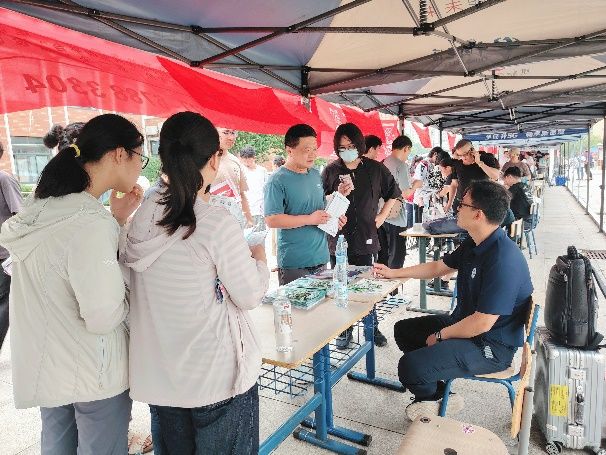 各招生宣传小组迅速行动,按照既定部署分赴安徽省和武汉市各地开展招生宣传。在咨询会现场,老师们早早地搭建好宣传展台,摆放好精心准备的宣传资料,热情开展招生宣传工作,详细介绍学校和学院的基本情况、招生政策和专业特色等。并针对考生和家长关心的录取分数线、专业设置情况、学习生活环境、升学及未来就业情况等问题,均一一进行了耐心、细致、热情地解答,让考生和家长更直观地了解学校、学院的办学实力和育人氛围。老师们表示热忱期盼各位考生报考地大,期待与大家在九月共启华章!