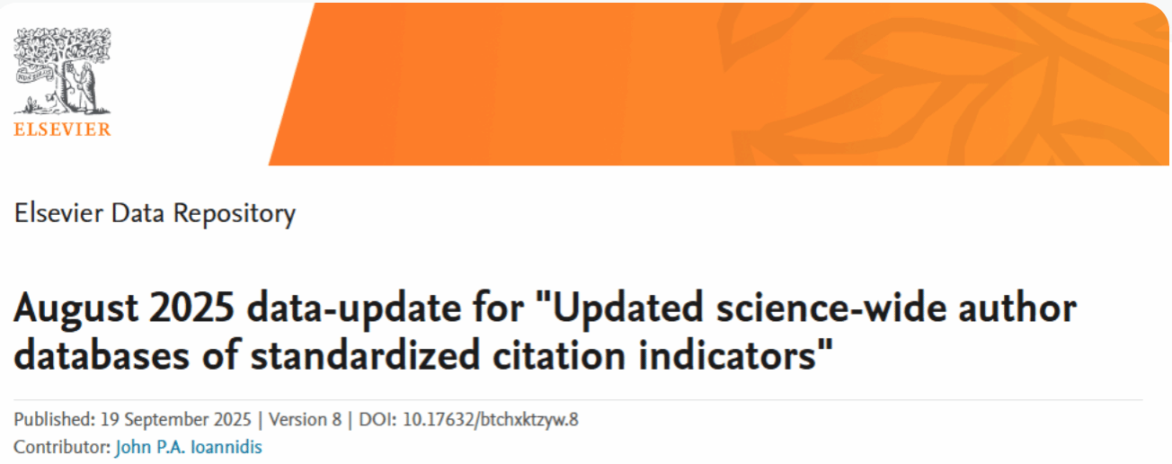 2025年9月,美国斯坦福大学和爱思唯尔更新了标准引文指标的全科学作者数据库,重磅发布了《2024年度全球前2%顶尖科学家榜单》(Stanford/Elsevier Top 2% Scientists List),万象城多名教师上榜。