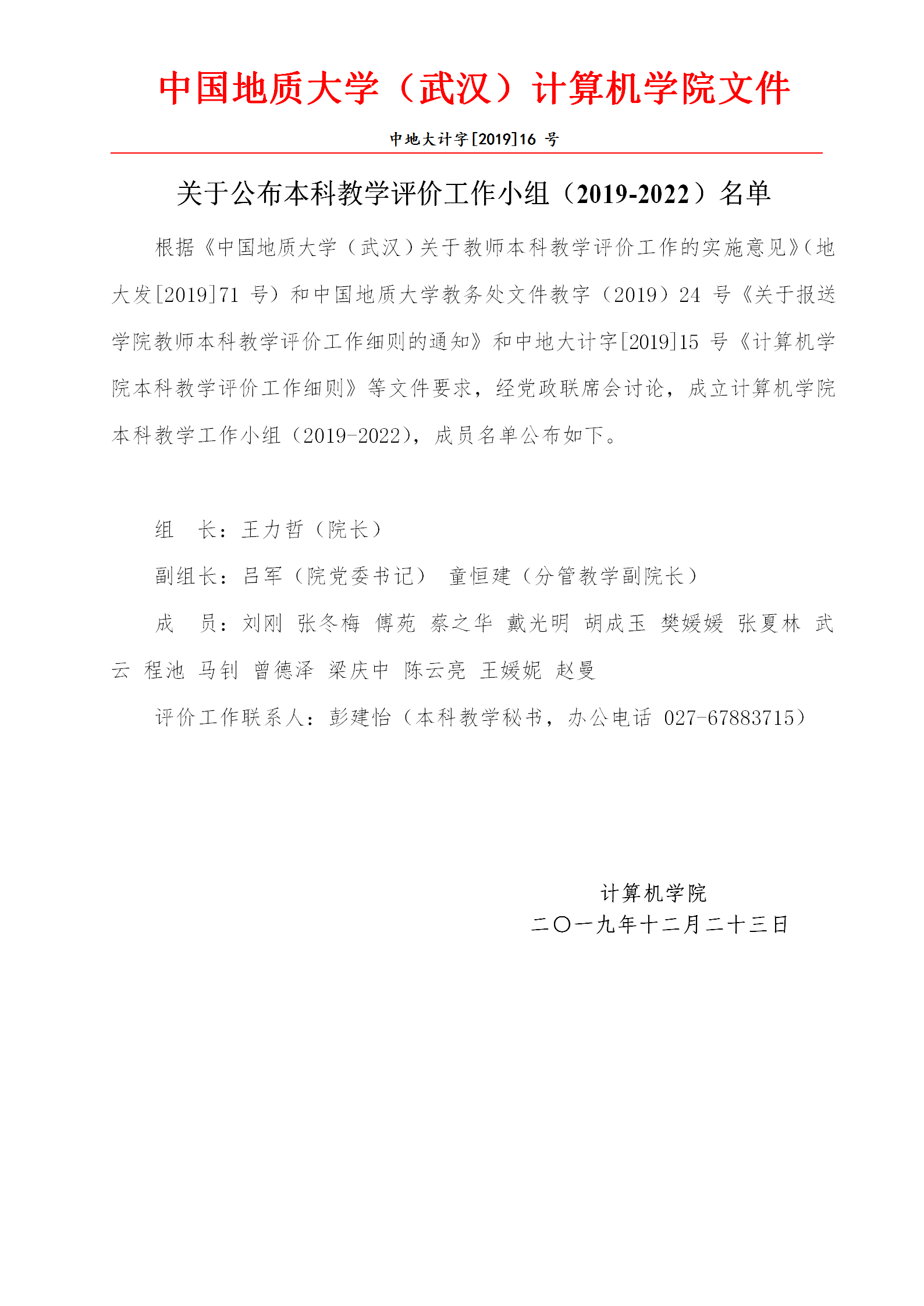 万象城awcsport官网关于公布本科教学评价工作小组(2019-2022)名单