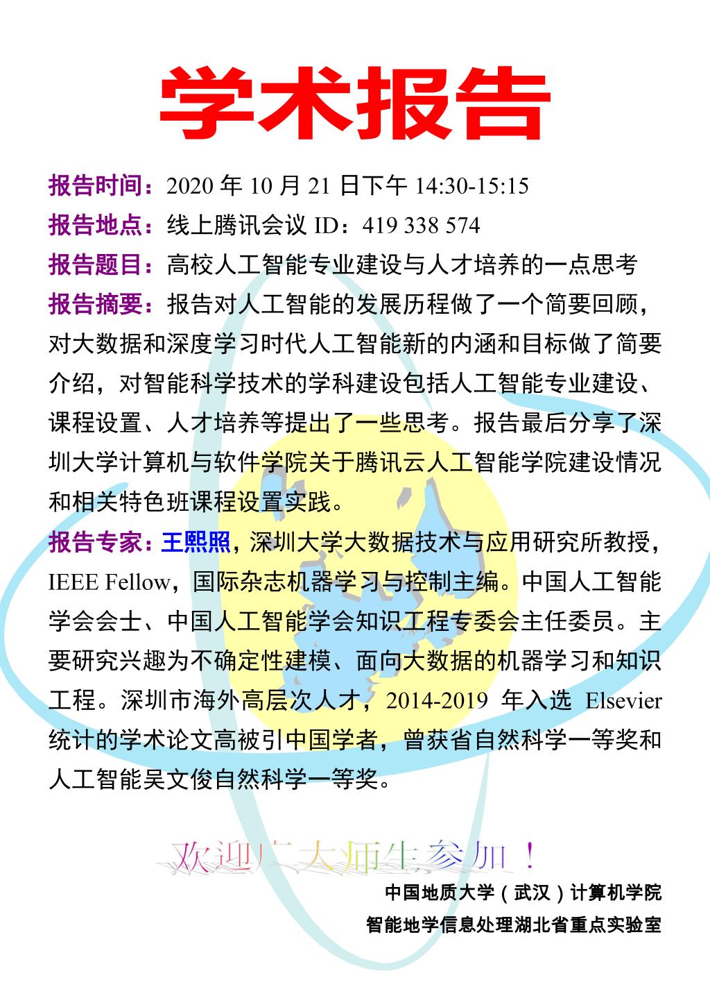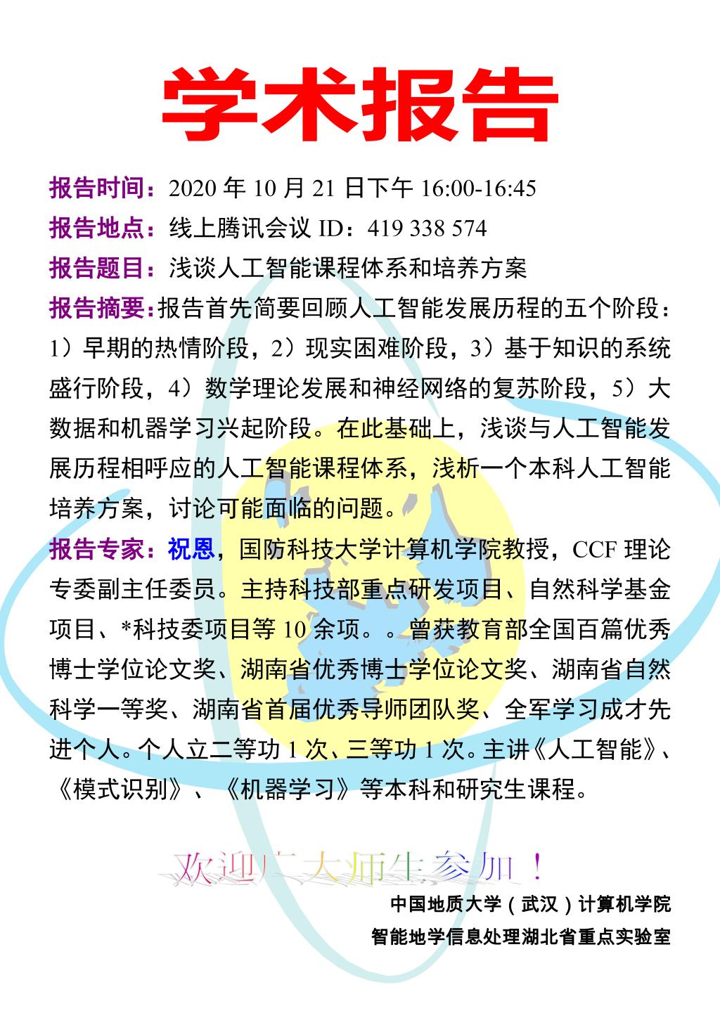 学术研讨会——2020年地大智能科学与技术专业建设研讨会