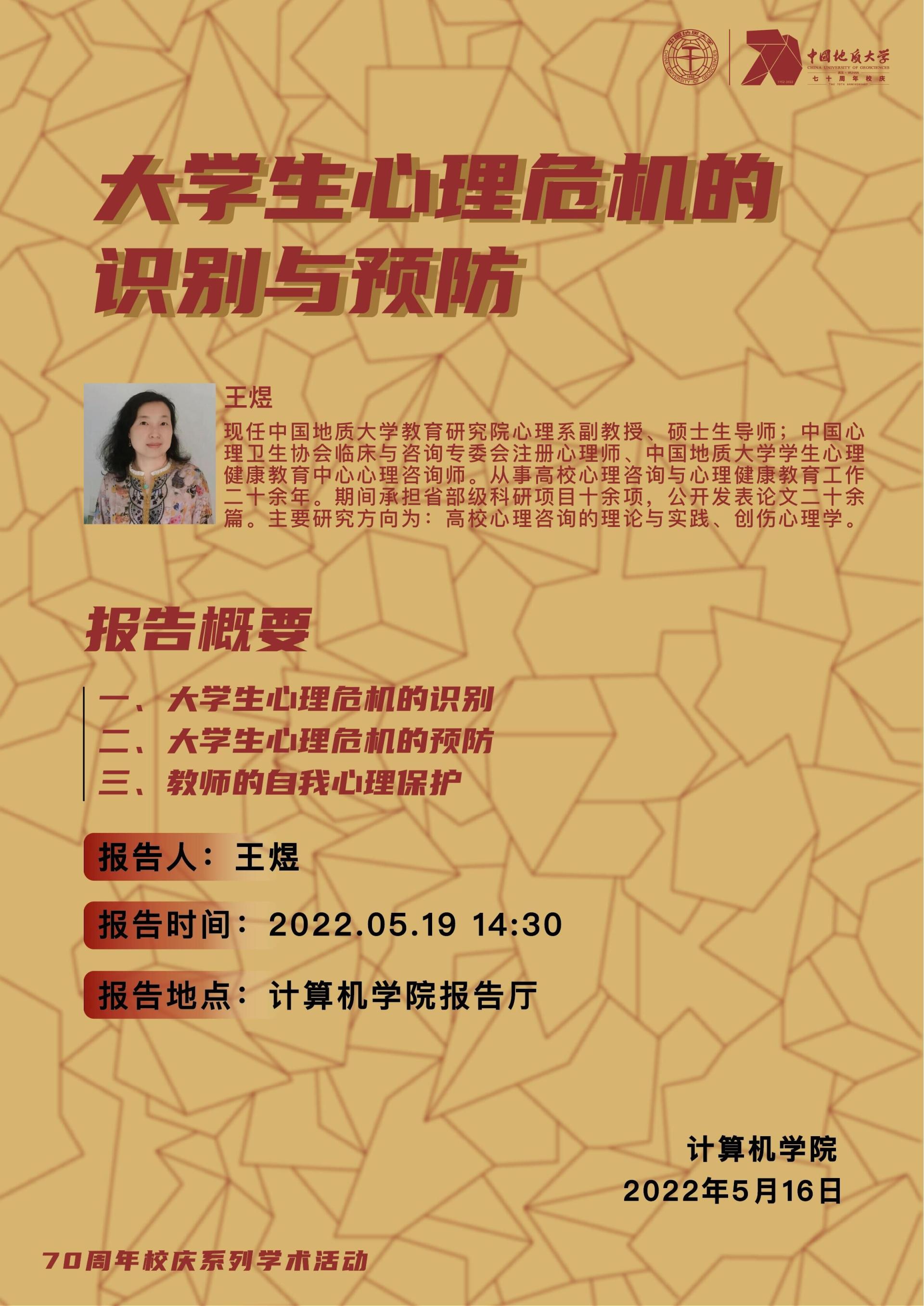 学术讲座——万象城awcsport官网教育研究院心理系副教授王煜:大学生心理危机的识别与预防