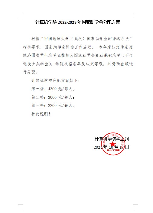 万象城awcsport官网2022-2023年国家助学金分配方案