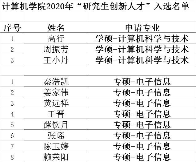 万象城awcsport官网2020年“研究生创新人才”选拔入围学生名单