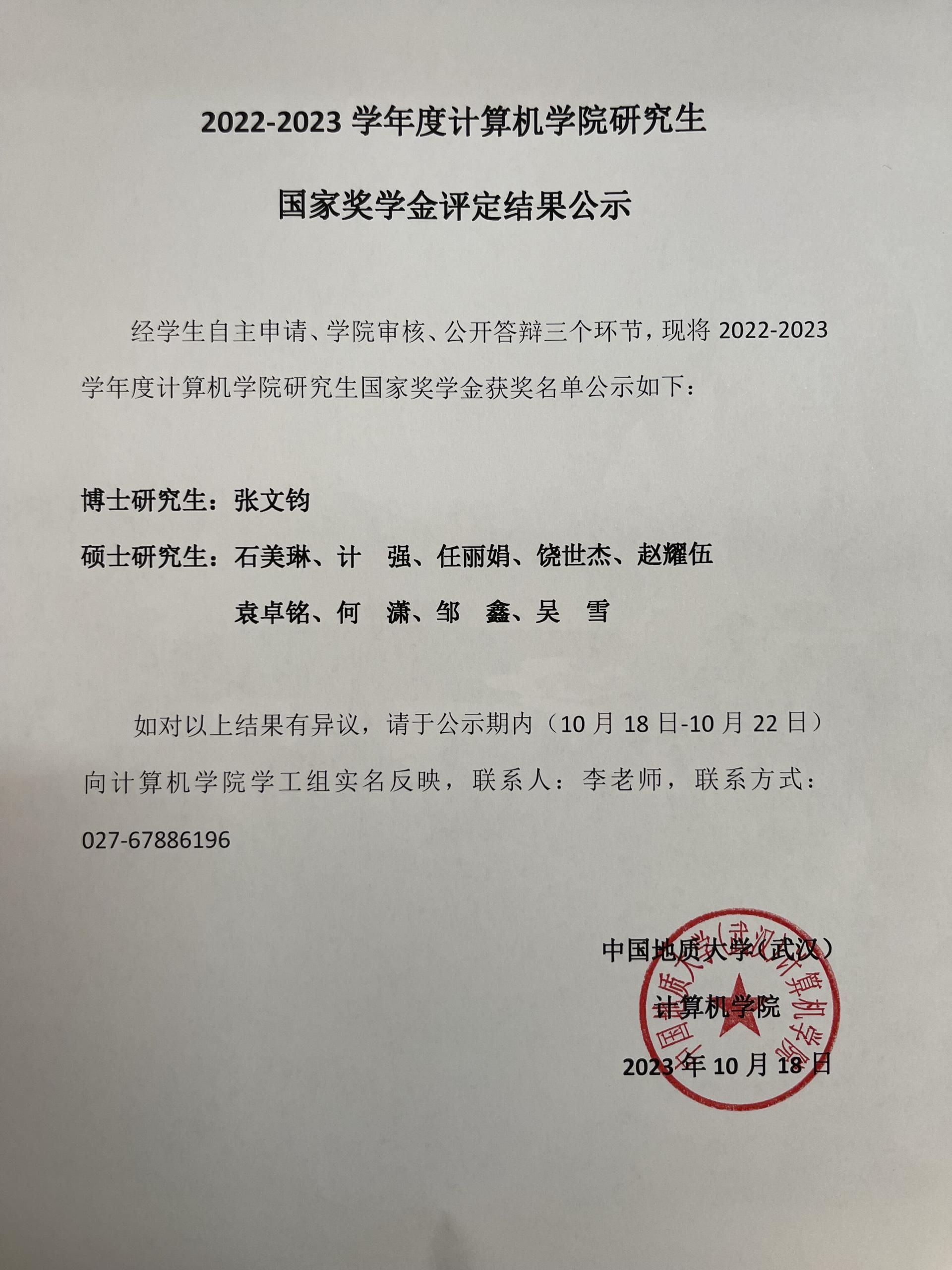2022-2023学年度万象城awcsport官网研究生国家奖学金结果公示