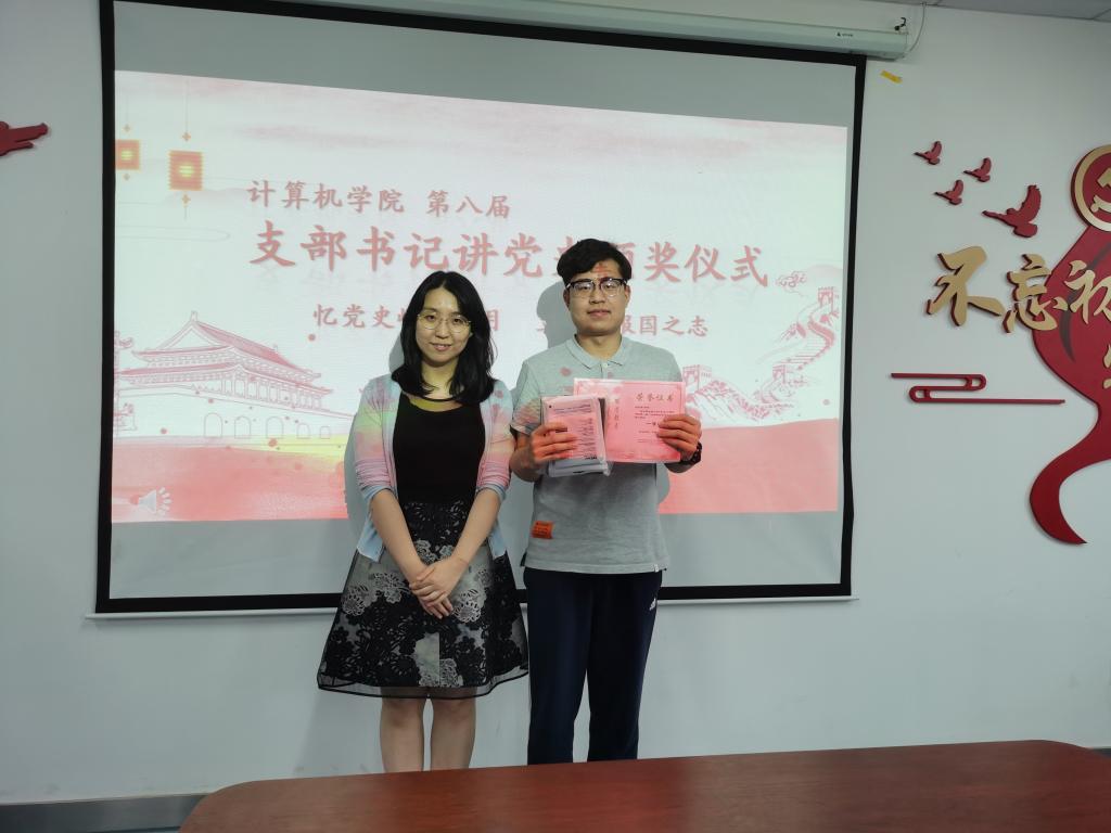 石剑峰为2018级硕士研究生第二党支部支部书记王开、本科生计科第二党支部王子震、博士生党支部甄慧翔颁发三等奖。