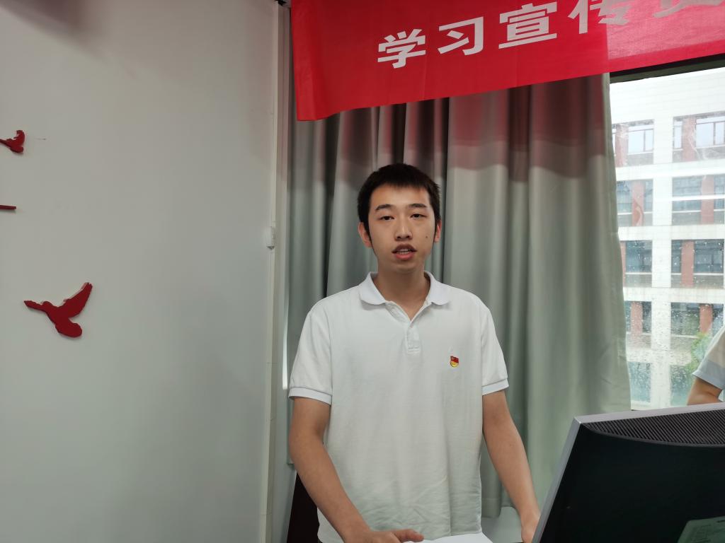 来自本科生大数据党支部的程鑫墙同志分享了他曾在浙江嘉兴服兵役期间,感受到党的伟大而立志加入中国共产党的故事,在场的同志深受触动。他表示,自己能够在建党一百周年的伟大时刻成为一名预备党员,十分幸运,今后他也将继续保持优良作风,发挥先锋模范作用,做到全心全意为同学服务。