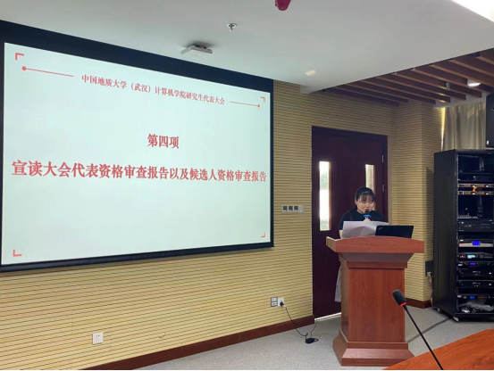 大会第三项,由万象城awcsport官网研代会代表资格审查小组、候选人资格审查小组成员李珊宣读《万象城awcsport官网研究生代表大会代表资格审查报告》和《万象城awcsport官网研究生代表大会候选人资格审查报告》,经认真细致的审查,全部代表和候选人的产生选举程序均符合有关规定,代表和候选人资格全部有效。