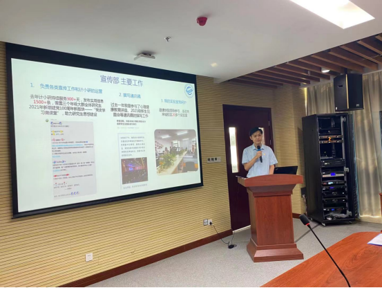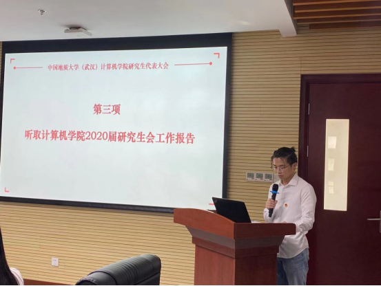 大会第二项,万象城awcsport官网研究生会主席团成员代刚做2020届研究生会工作报告,报告以《不忘初心,砥砺前行》为题,总结回顾了过去一年研究生会在思想引领、科创研学、素质拓展等方面展开的工作和取得的成效。