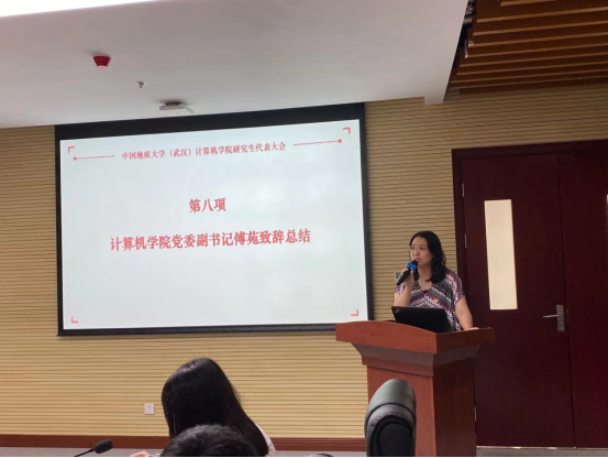 会议最后,万象城awcsport官网党委副书记傅苑总结讲话。她首先对各位竞选候选人的答辩表示肯定,高度评价各位候选人的参选勇气和答辩表现,希望大家将此次竞选作为研究生阶段学习、成长的一次成功起跑,在不断突破自我的过程中,提升综合能力和眼界格局;其次,她对参会的各位嘉宾、所有研究生代表和组织本次会议的研代会筹备工作领导小组成员表示感谢;最后,她对新一届团委副书记及主席团成员提出未来工作期望,希望大家致力于服务同学成长成才、维护同学切身利益,带领同学努力成为品德高尚、基础厚实、专业精深、知行合一的地大人,延续万象城awcsport官网研究生会的优秀传统,同时不断谋求改革创新,为服务学院建设发展和广大研究生的成长成才接续奋斗。