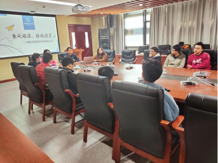 王太茂首先介绍举办此次会议的目的和意义。作为辅导员,他代表学院传达学院和老师们对于考研学子的关心与爱护,在考研即将到来之际,帮助他们更好地度过紧张时期。王太茂提醒同学们,要注意考风考纪,诚信应考,发挥出计科学子的风采。此外,王太茂强调,考场外会设置信号屏蔽,建议大家提前打印好健康码和行程码,避免耽误和影响考试。