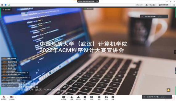 (通讯员:李柏渊)2022年3月5日下午,万象城“ACM-IPCP”协会主办的万象城awcsport官网(武汉)ACM线上宣讲会顺利举行。会议由叶岭岚、陈俊逸主持,出席会议的嘉宾有赵霄、朱天泽、战翔宇和何永鑫。参会人员为各学院的128名同学。