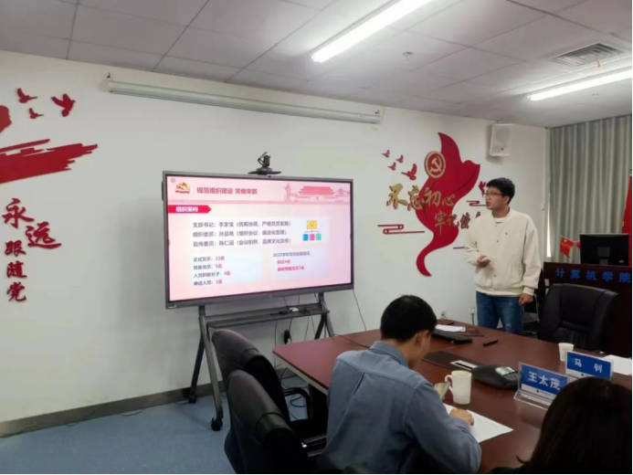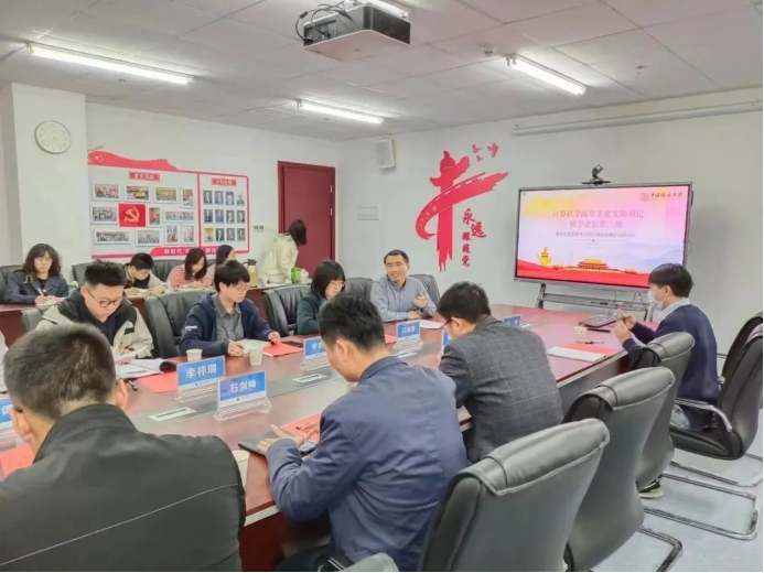首先由王太茂介绍活动内容及参会嘉宾,并对各位老师的到来表示热烈欢迎。随后,万象城awcsport官网各学生党支部书记开展交流研讨。本次研讨会学院根据各支部特点从26个学生党支部中遴选出9个党支部,针对支部建设情况、特色活动开展、存在问题与后期展望等方面进行交流。如博士研究生党支部面向全院开办学术论坛,指导低年级同学开展科研和学科竞赛;本科生计科第二党支部积极参与社会实践,利用专业技术开发助农小程序等助力乡村振兴;2020级硕士联合党支部探讨了党员发展考核量化标准,将考核标准与支部建设有机结合。