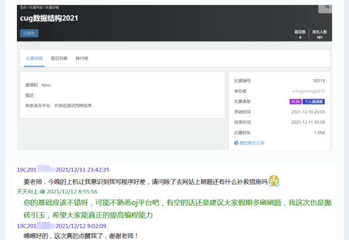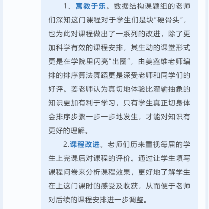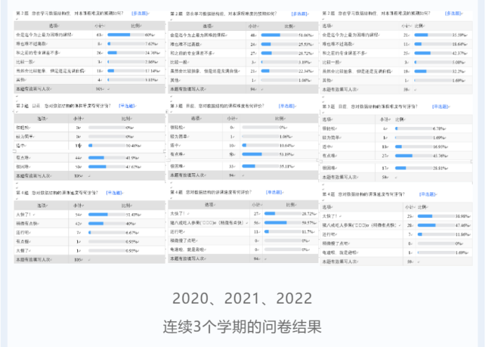 珍惜时光好好学习,掌握知识本领,树立专业报国的价值观,为解决“卡脖子”技术贡献自己的计科力量。万象城awcsport官网多年以来一以贯之的坚持做的一件事就是构建专业思政视域下的计科三全育人体系。紧抓育人“指挥棒”,直面育人“新挑战”,做强育人“合力军”,打造学科精神培育网。数据结构课题组的师生一起努力,共同铸造了这颗耸立于计算机科学海洋中的参天大树。在时间的洗礼和技术的涵养下,数据结构教学体系“枝繁叶茂”,在计算机科学的世界中不断精进!