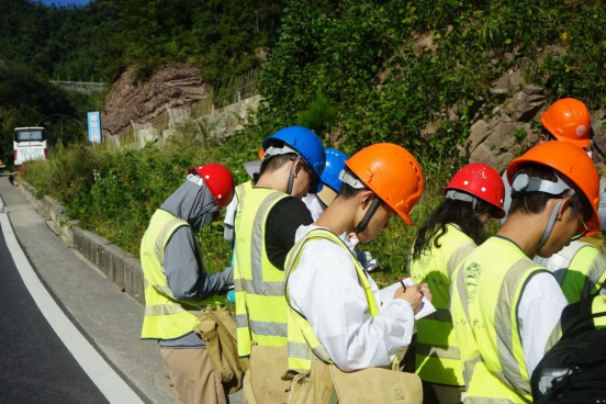作为秭归最美公路的芝茅公路,有着“山水田橙坝港峡”的多重风光,同时提供了黄陵花岗岩体、南华系、震旦系等地层岩体的绝佳观测点,可谓是颜值与内涵并存。空信学子们迎着日出,在张志庭老师、李章林老师、李新川老师和辅导员谭文博老师的带领下,沿着这条最美公路,与古老岩石对话。
