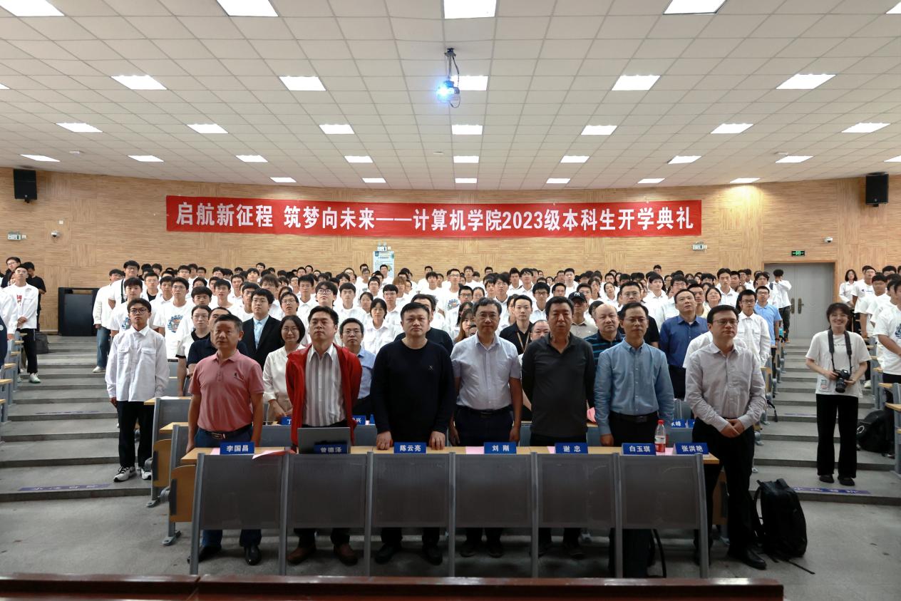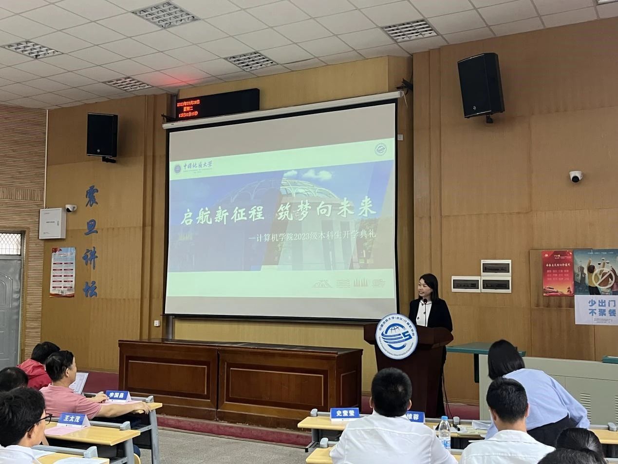 万象城awcsport官网党委副书记、院长张洪艳致辞。张院长首先代表全院师生对加入万象城awcsport官网的382位本科新生表示热烈的欢迎与衷心的祝贺,他对同学们选择加入计算机大家庭,成为“地大计科人”感到分外欣慰。他希望同学们在未来几年中为自己的选择砥砺耕耘、拔节生长、向阳而生,在地大、在万象城awcsport官网留下一生中最为深刻的年轮。同时,他向全体新生提出三点建议:一是要选择肩负使命,心怀国之大者。计科学子要深耕科研土壤,为国家掌握关键性核心技术贡献力量,让青春在实现民族使命中闪耀;二是要选择仰望天空,永攀知识高峰。计科学子要保持对知识的渴望,努力成长为具备计算思维、引领行业发展的交叉学科人才,用广阔的学科视野面对新的挑战;三是选择脚踏实地,练就过硬本领。计科学子要时刻与电脑和网络打交道,在电脑与网络间要学会拒绝诱惑,将时间用在了解行业发展最新前沿,了解市场需求驱动关键技术的突破。