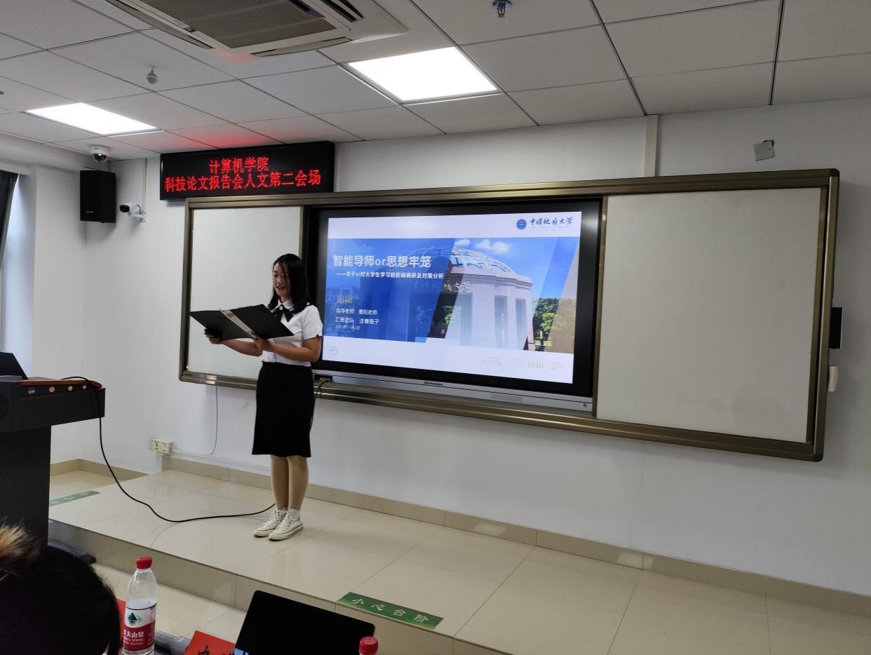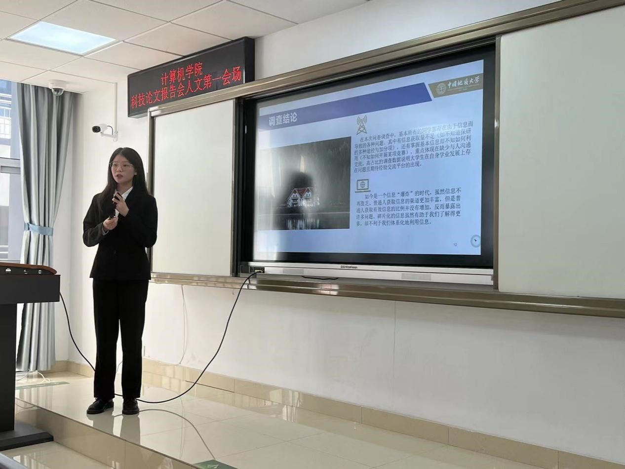 人文会场于南望山校区教学综合楼举行,有两个分会场,共25支队伍参赛。他们的主题新颖、内容饱满,论文研究深刻仔细,材料详尽准确。其中郭婷婷团队的《基于数据挖掘和情感分析的学生心理状态分析研究: 方法探究与应用展望》和董翘楚团队的《45°人生:社会变迁下的青年心态困境及其调节》运用不同的方法深入分析了当代青年学生的心理状态。王阳团队的《基于VR技术对非遗文化传承与创新的道路探索》和孙雨茜团队的《因循遵旧or守正出奇——新媒体助力传统文化“破圈”的案例分析及影响调研》都从新兴技术角度出发,探讨了如何利用创新手段保护和传承我们国家独有的传统文化,与此同时极具创新性的双问卷调研方式和数据、词频分析方式获得评委老师的一致好评。