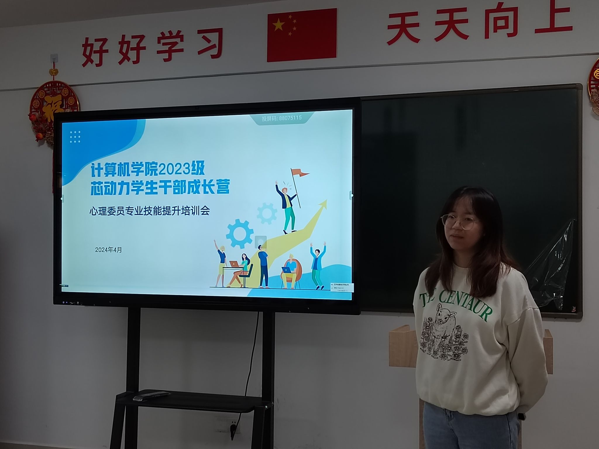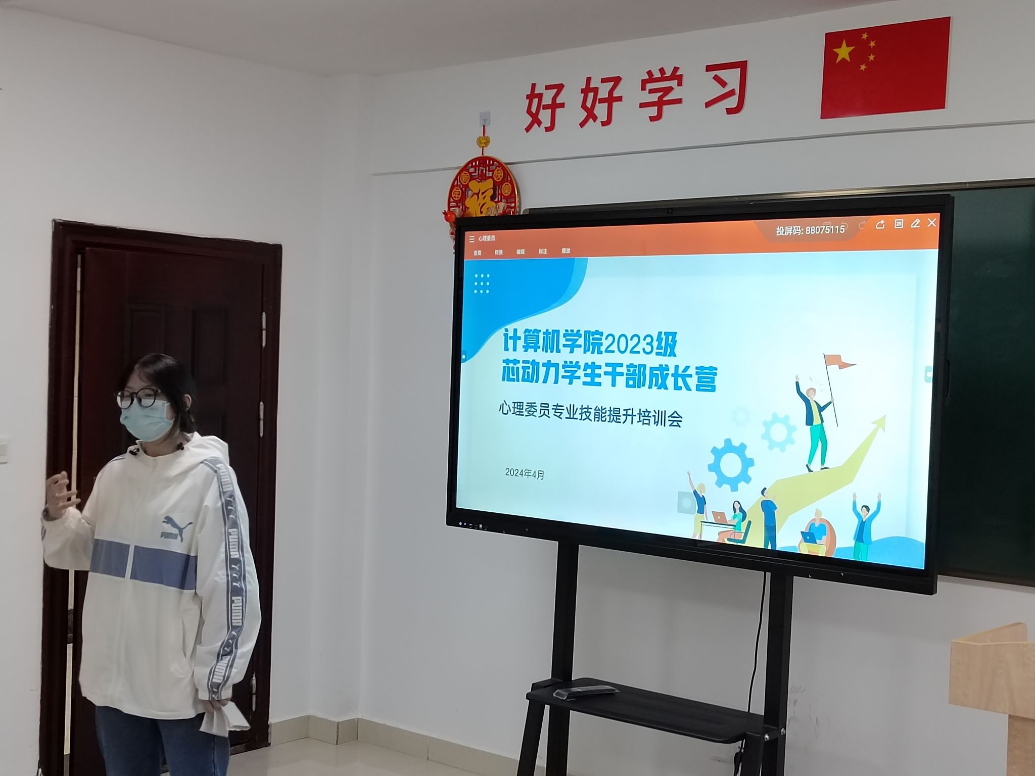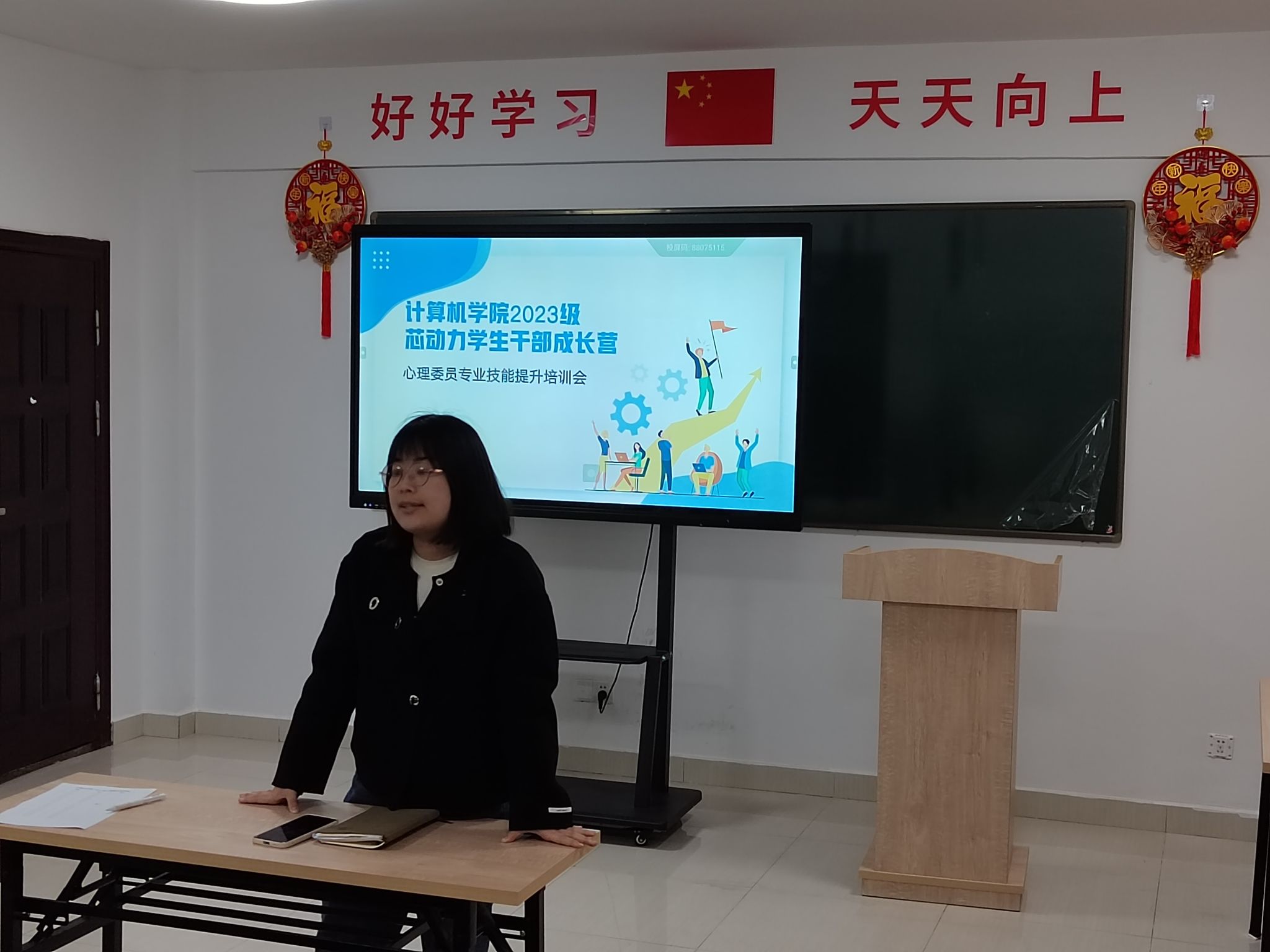 为不断提高心理委员的工作能力,进一步发挥心理委员在心理健康教育中网格员的重要作用,提高学院心理育人成效,4月8日中午12点,万象城awcsport官网2023级芯动力学生干部成长营暨心理委员专业技能提升培训会在一站式服务大厅103顺利召开,大会由兼职辅导员武玥主持,2023级辅导员闫维蓉老师,2023级全体心理委员参加。