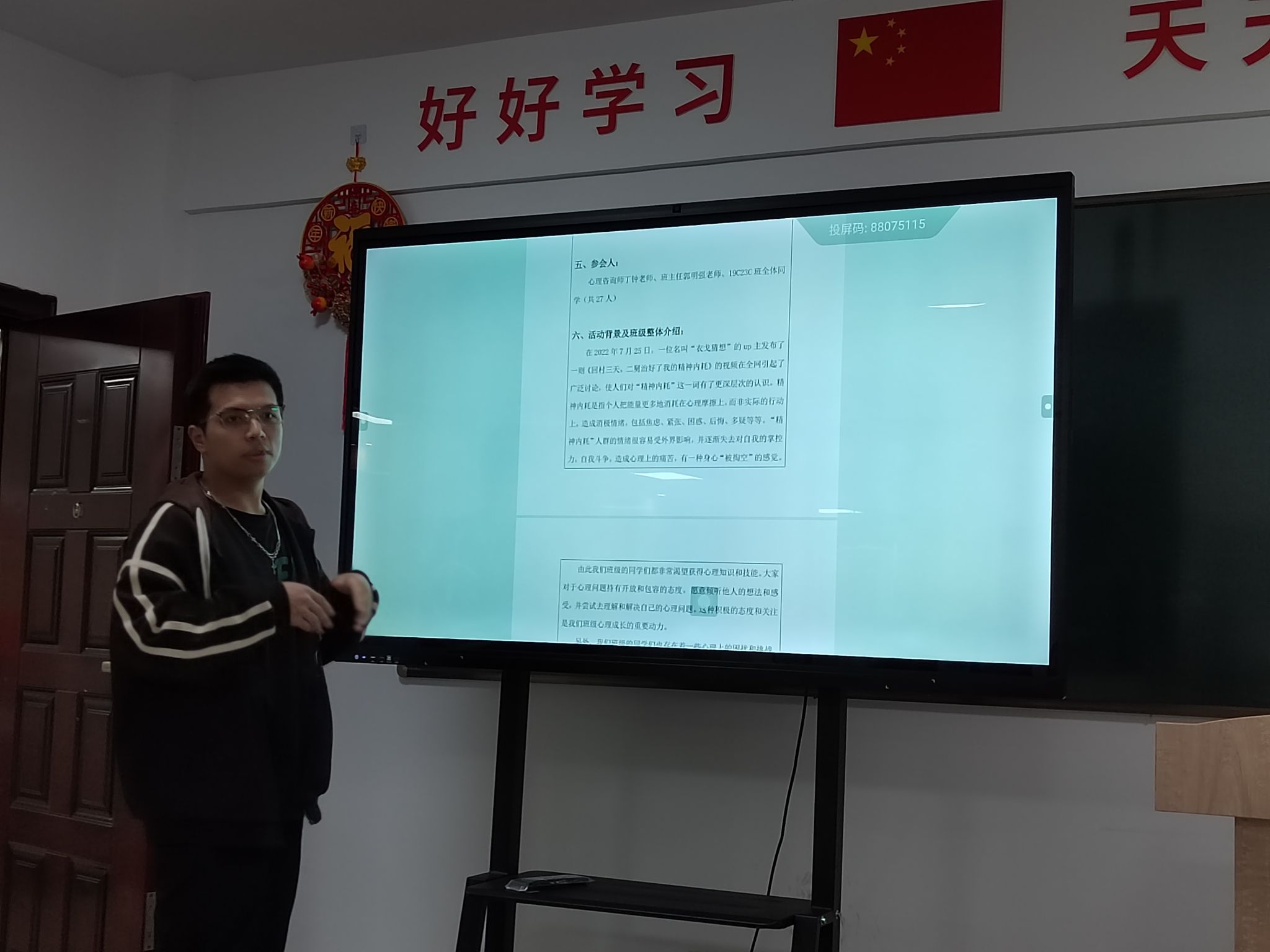 最后,辅导员闫维蓉老师总结发言。她强调了学校对学生心理工作的重视,并对各位心理委员给予了充分的肯定和鼓励,希望大家向三位优秀的心理委员学习,以诚相待,认真准备每一次的心理健康教育活动,积极开展工作。同时,她表示心理委员是同学们心理健康的重要守护者,希望大家能够持续学习和进步,抓住每一次机会来展现班级良好的风貌,为学校和学院的心理健康工作贡献自己的力量。