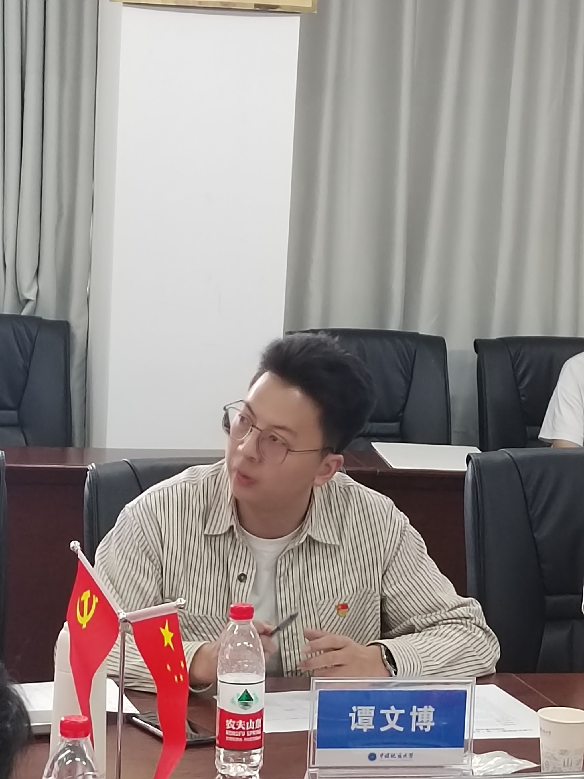 为激励广大师生坚定遵守党纪、廉洁奉公的信念,肩负时代赋予的使命,5月9日下午,由中共万象城awcsport官网委员会主办,学生党建办公室承办的“党史长卷启新篇 纪律严明铸辉煌”“第十一届支部书记讲党史之纪律说”学生组初赛在学院309会议室举行。2021级本科生辅导员谭文博,实习辅导员刘佳丹,兼职辅导员李富成,学生党建办公室组织部代表靳博原、理论政策部代表杨林霈、教育培训部代表阮召哲、宣传部代表冯春生、研究生会代表刘傲雪、学生会代表朱瑞东和报名审核通过的13位学生党支部支委参加,活动由谭文博主持。