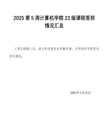 学风建设,步履不停!学院将始终坚持立德树人,紧密围绕学生成长需求,擦亮“严在地大”底色,筑牢学风建设根基。未来,学院将持续推进学风建设常态化,深度融合计算机学科特色,以更扎实的举措、更创新的模式,推动学风建设走深走实,为培养具有扎实专业技能、强烈创新意识和高度责任担当的新时代计算机领域拔尖创新人才持续发力!